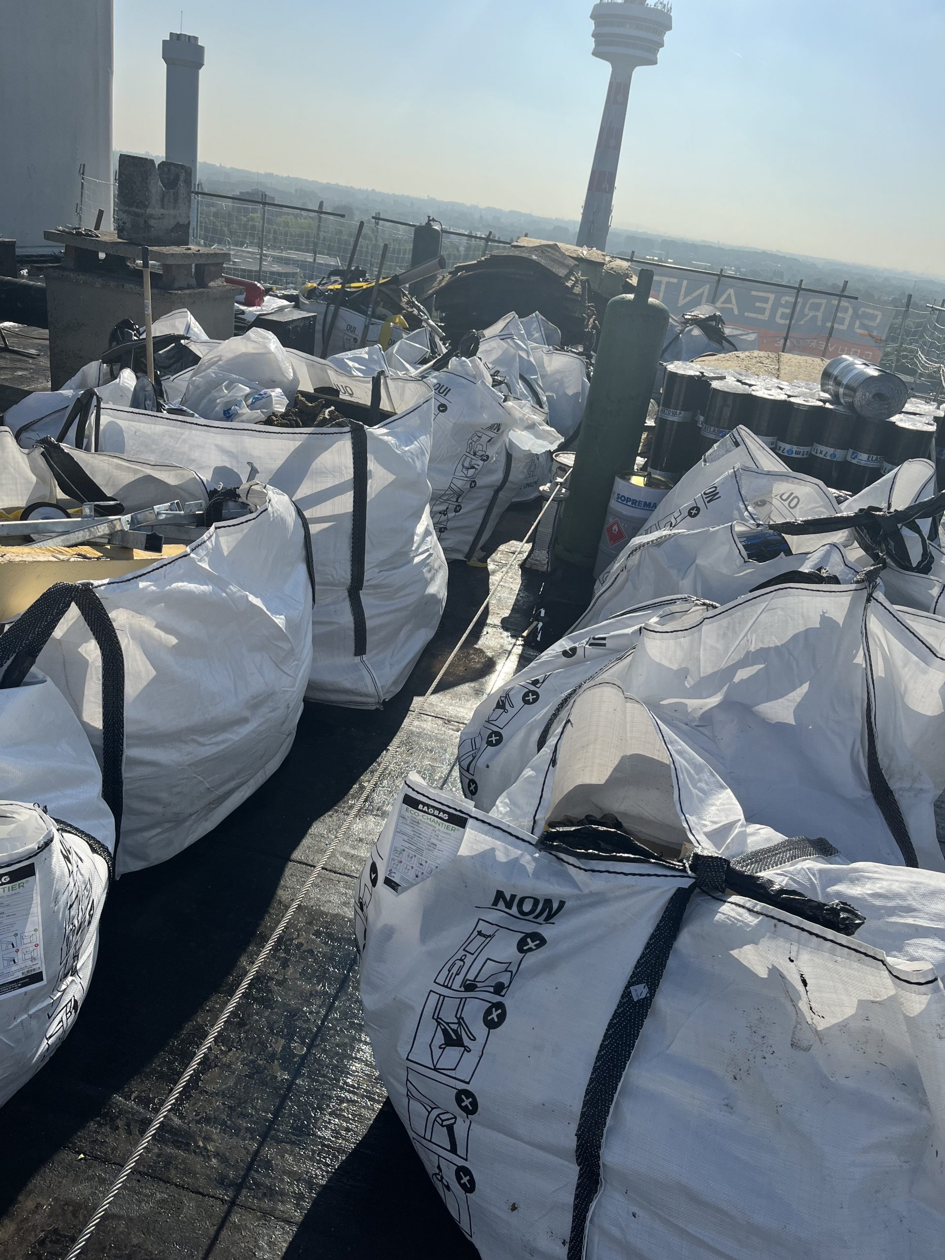 Infos clés : 14 ème étage. Démontage de l’ancien complexe puis pose d’un nouveau PU + bi-couches ardoisé