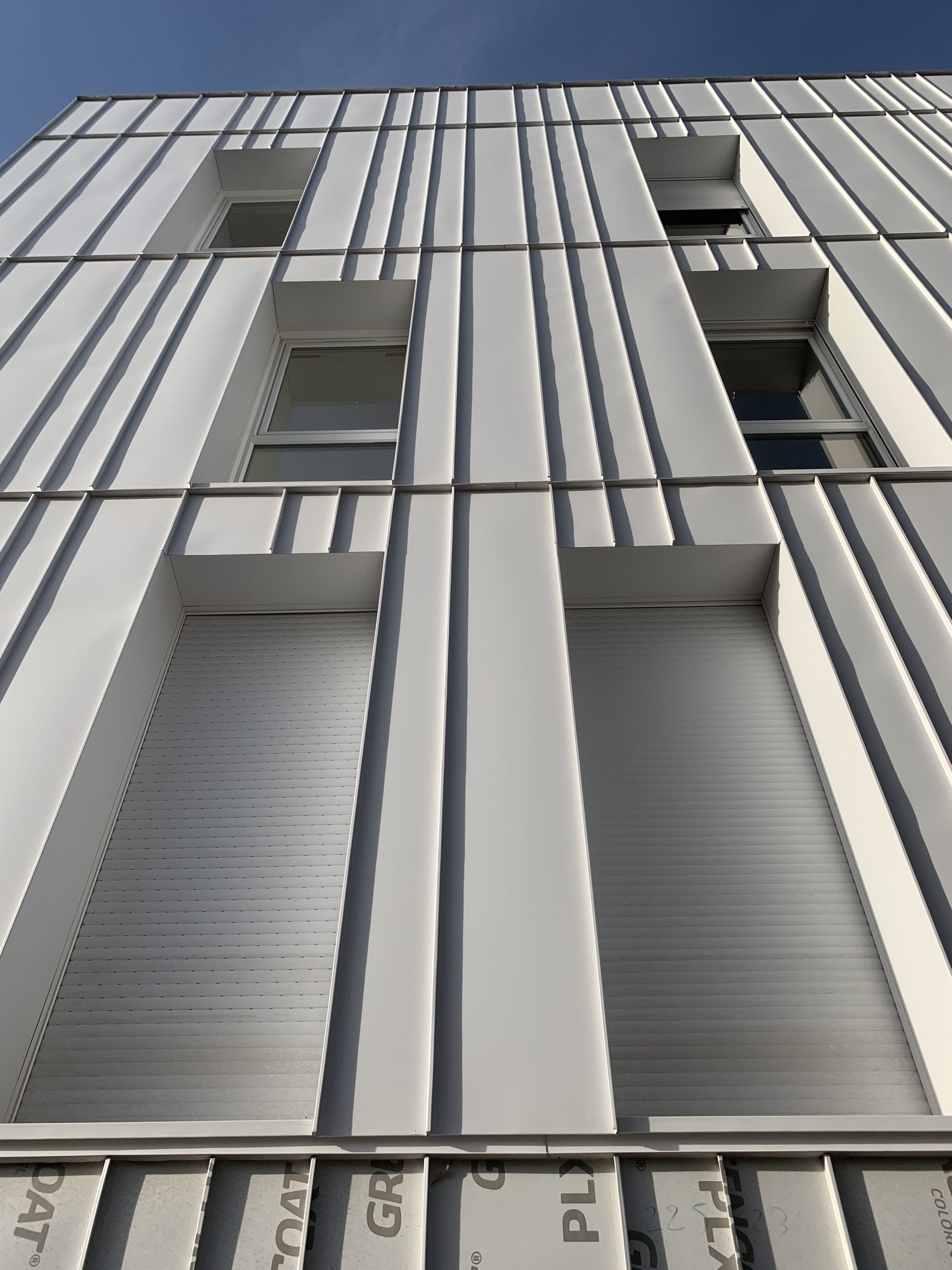Infos clés : Couverture et bardage à joint debout (Bardage pose à joint décaler) en Greencoat PLX Blanc